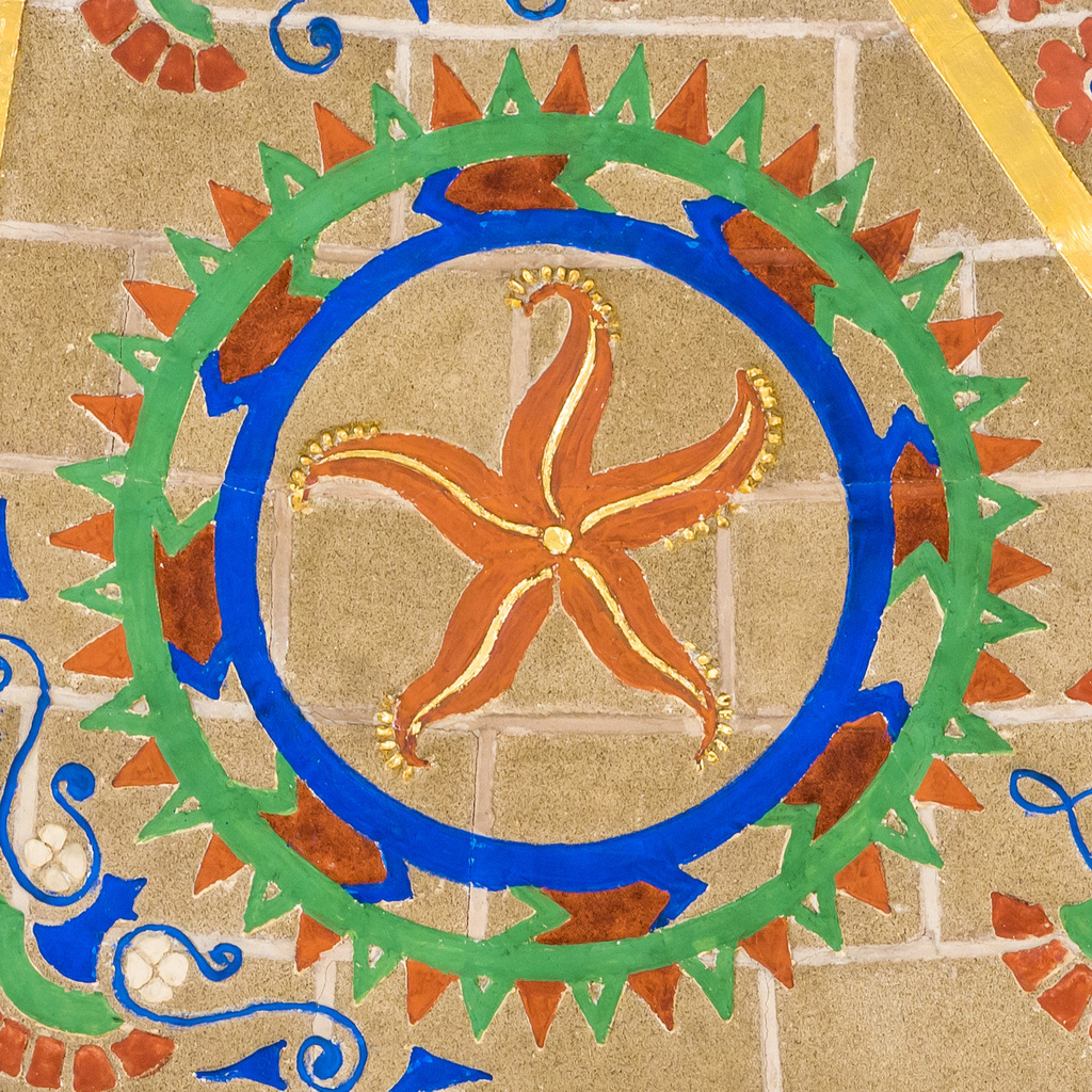 While this main image depicts a very early naturalist simply observing a lion, two additional smaller images depict animals that raised problems of classification. The Starfish, sometimes difficult to appreciate as an animal, seemed to be an invertebrate but wore its skeleton on the outside (actually, a spiny skin). Starfish appeared in many different places within various schemes of classification. When evolutionary descent became the accepted criterion, their precise place depended on a very problematic record of fossil evidence.